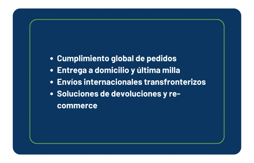Implementamos centros de fulfillment cercanos a sus mercados clave para acelerar entregas, gestionar inventarios y manejar envíos transfronterizos sin contratiempos. Desde la recepción del pedido hasta la entrega final, optimizamos cada paso para que su tienda en línea cumpla sus promesas de entrega puntualmente, incluyendo la gestión eficiente de devoluciones.